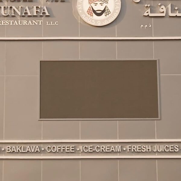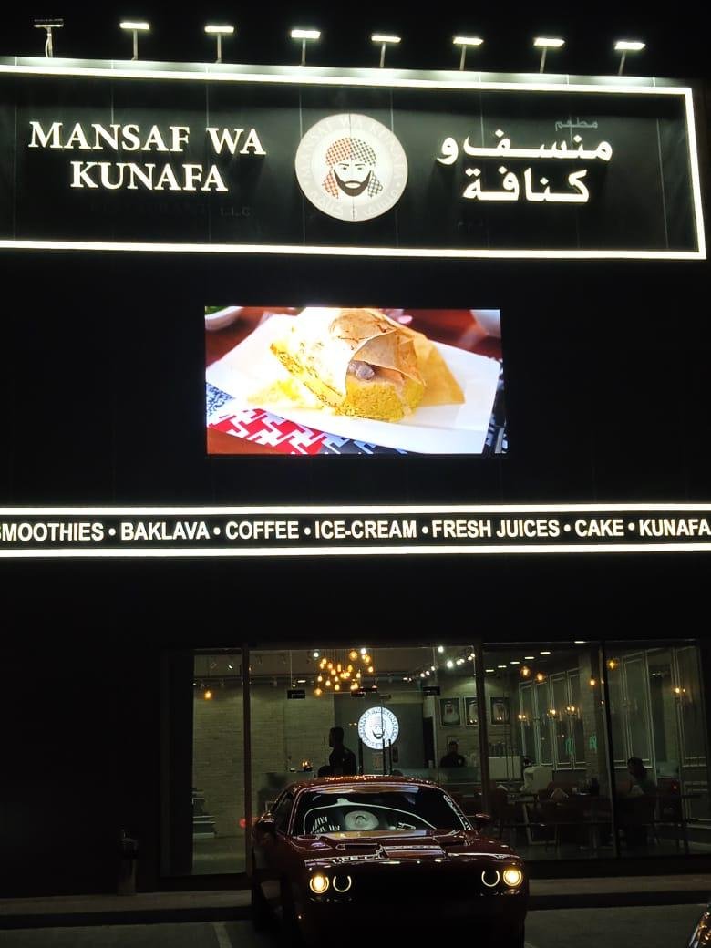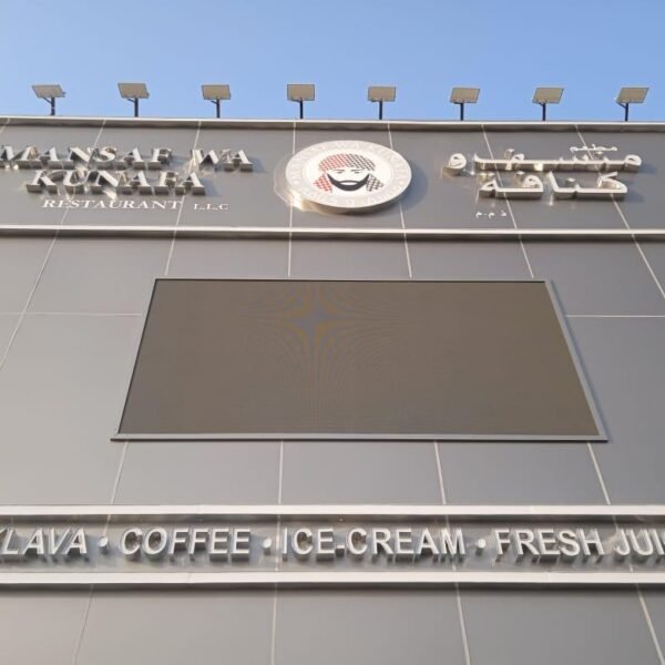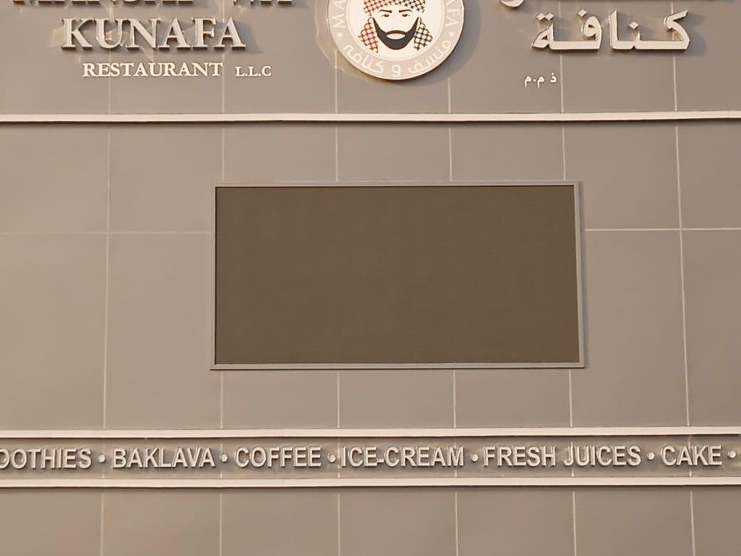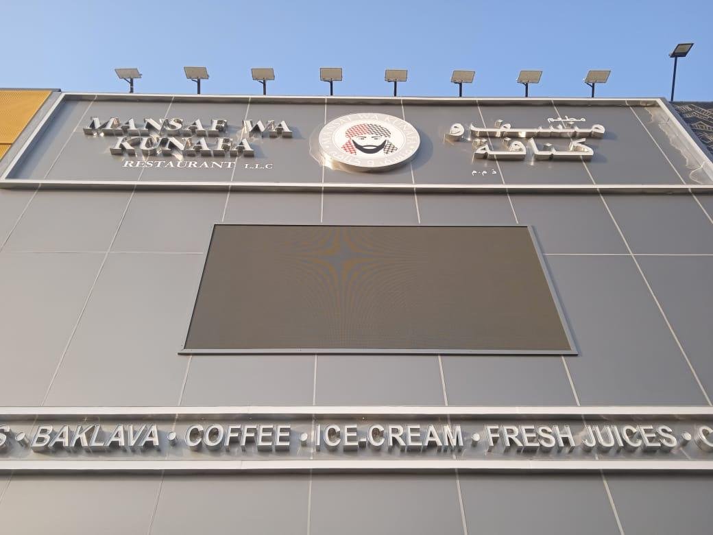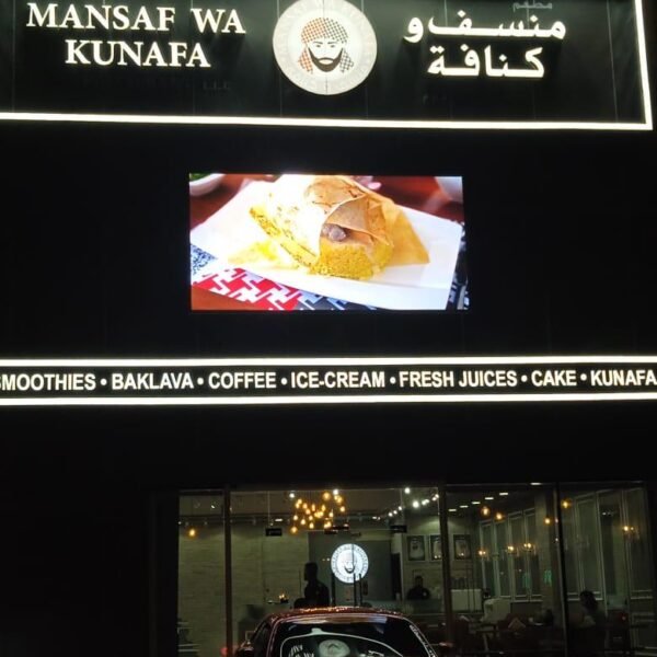 Description: Makers24 installed a high-brightness outdoor P3.9 LED screen for Mansaf Wa Kunafa, enhancing their restaurant’s visibility with crisp, dynamic digital signage. Designed for outdoor environments, this weatherproof, energy-efficient LED display ensures high contrast, wide viewing angles, and seamless content playback, making it perfect for menu promotions, brand advertising, and engaging customer experiences. The P3.9 pixel pitch delivers sharp image quality even in daylight, ensuring clear and vibrant visuals that attract attention.